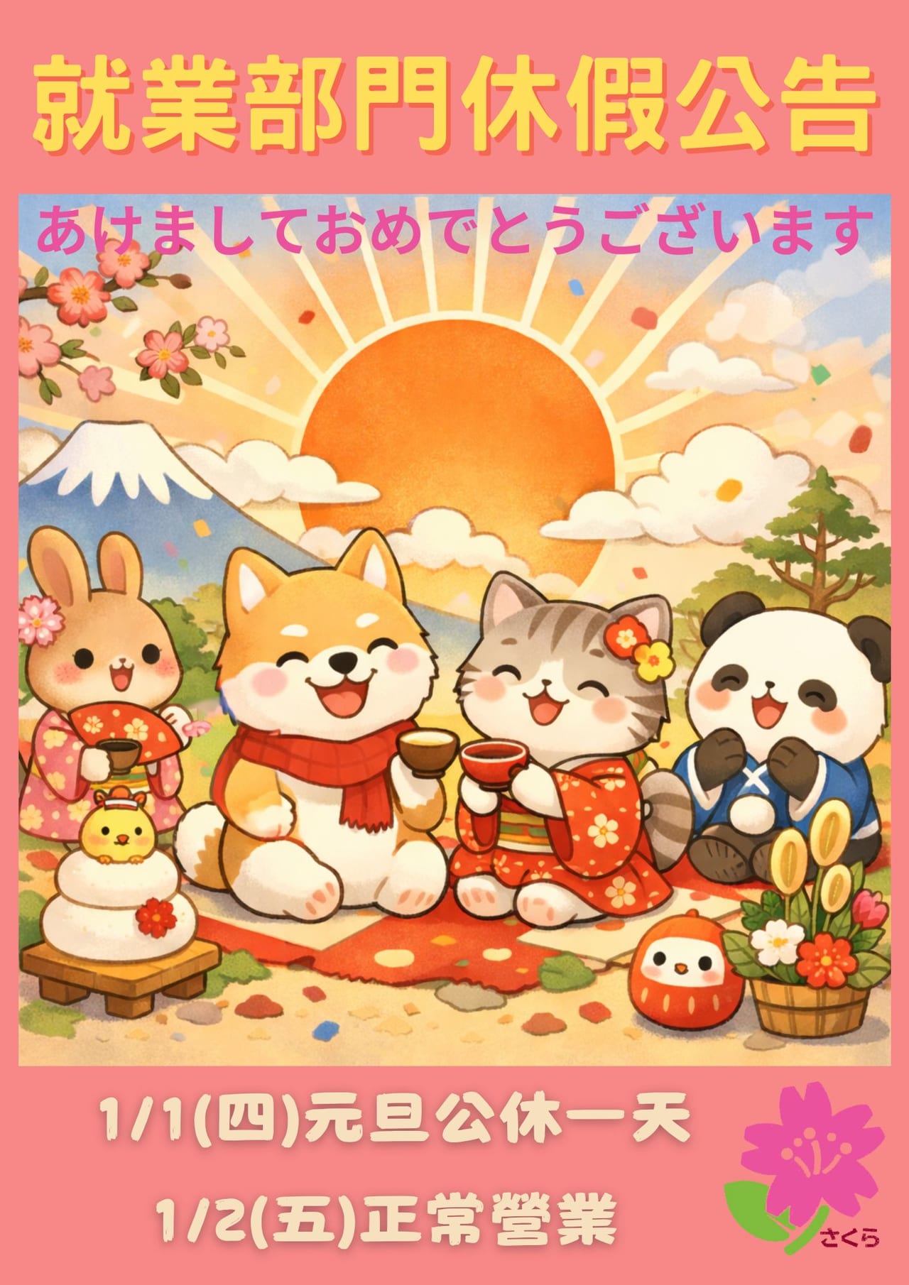 - 【公告】1/1(四)元旦公休一天 1/2(五)開始正常營業囉!